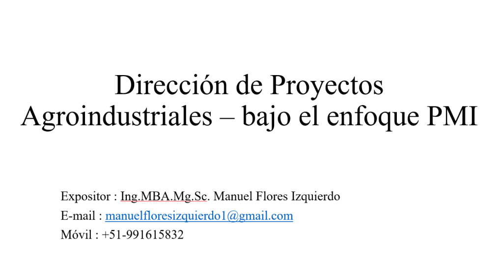 Dirección de Proyectos Agroindustriales – bajo el enfoque PMI