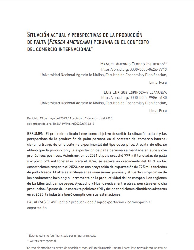 Os comparto mi publicación sobre la palta en el Perú. En la prestigiosa revista de Ingeniería industrial de la Universidad de Lima.