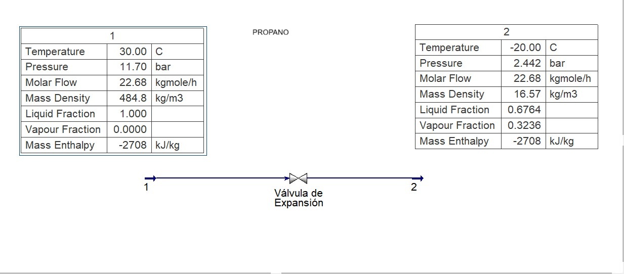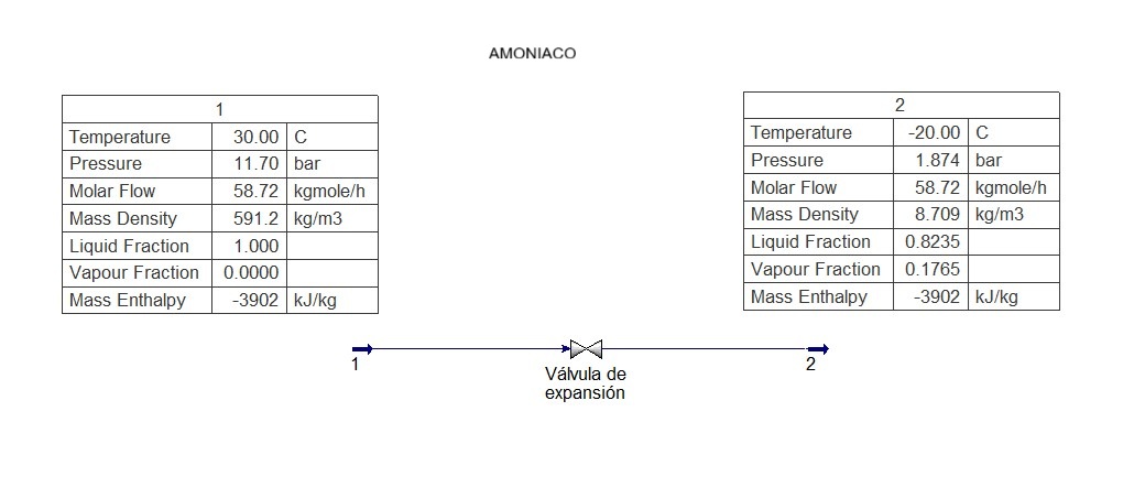 El amoniaco al pasar por la válvula de expansión, se convierte en gas el 17.65%, el propano 32.32% y el R134a el 31.87%.